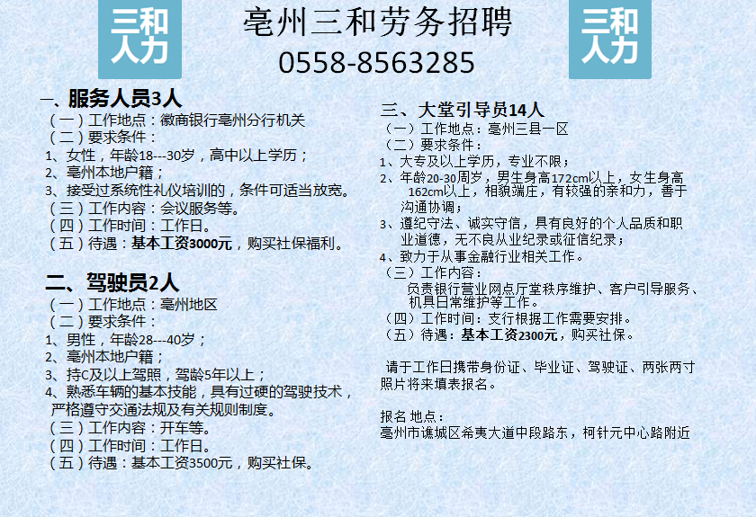 All rights reserved 版權所有 亳州市三和人力資源服務有限公司 m.zhnc123.com